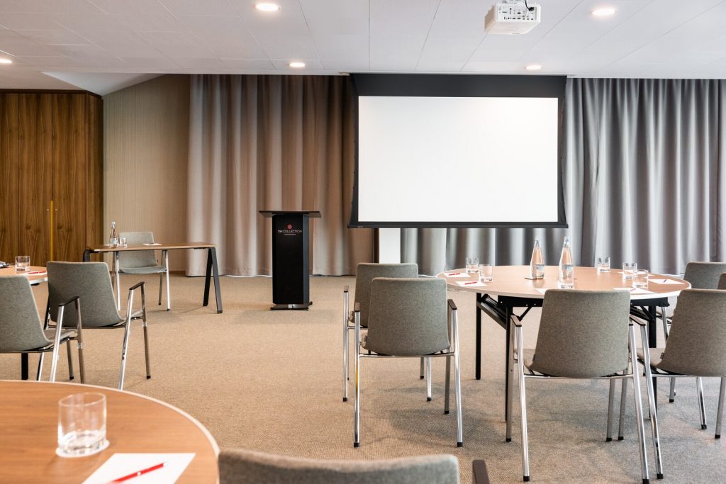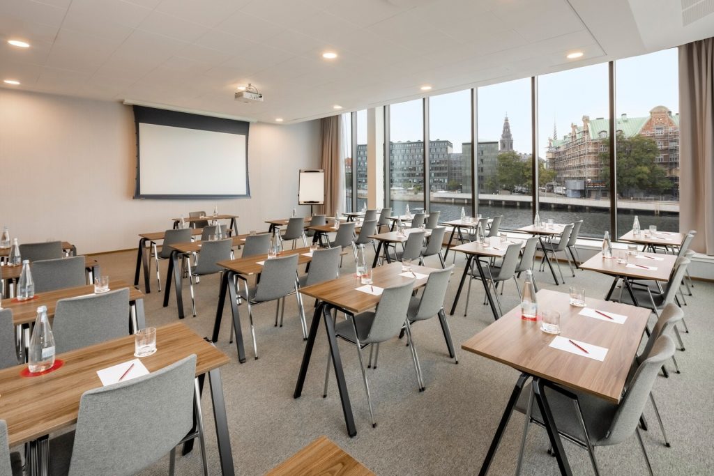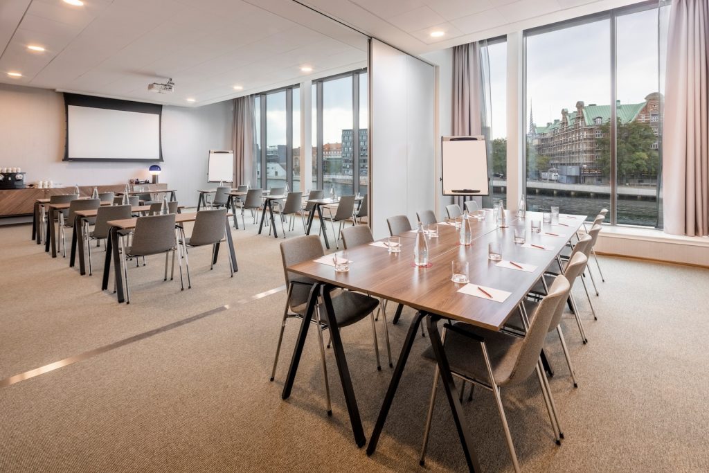 Alle vores mødelokaler indeholder alt det tekniske udstyr, der er nødvendigt for et succesfuldt møde, som f.eks. skærme, projektorer og stabilt Wi-Fi.