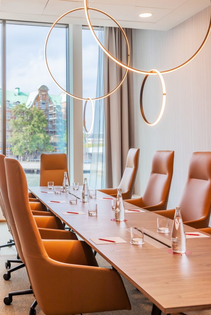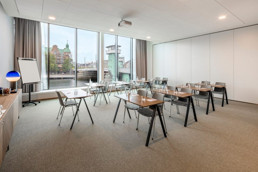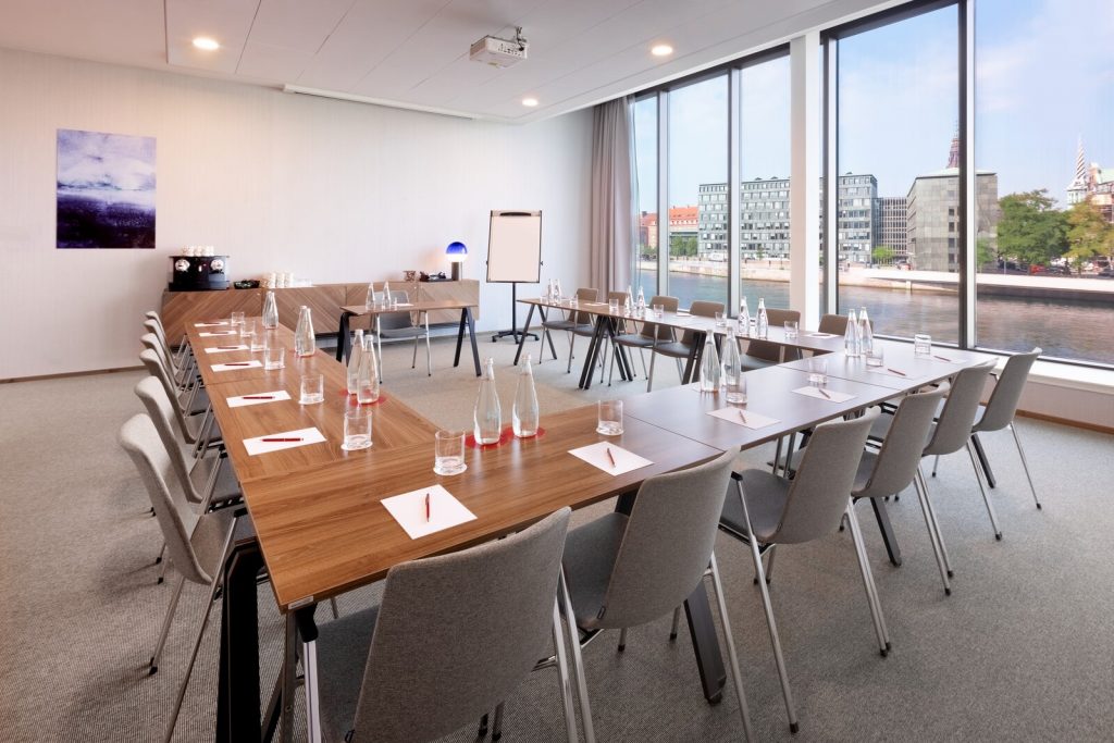 Vores hotel rummer syv møde- og eventlokaler, som kan skræddersys til f.eks. produktpræsentationer, teambuilding, receptioner og fester. Det største lokale har plads til 250 gæster, og det mindste har plads til 12 personer, og dette er i et eksklusivt board room design, med en smuk udsigt direkte til vandet.