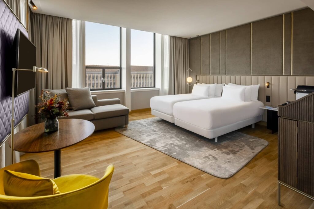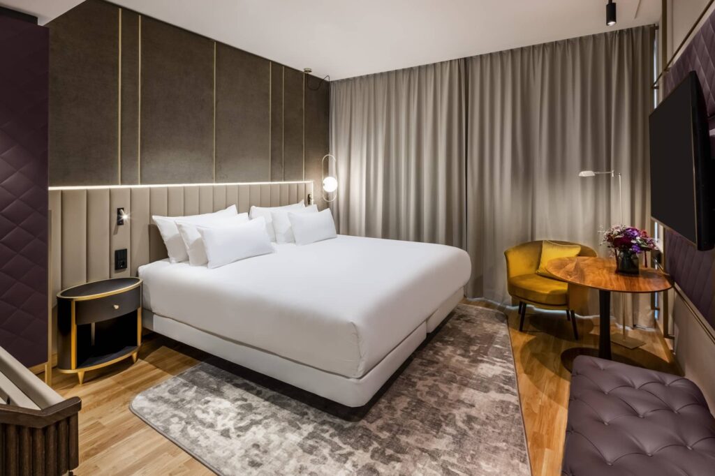 Gæster kan vælge mellem værelser med enkeltsenge eller kingsize senge. Hotellet tilbyder desuden familieværelser, eksklusive suiter og hjørneværelser. Alle værelser har widescreen-tv og minibar, strygejern og strygebræt. Hvis der er brug for ekstra forkælelse, anbefaler vi et afslappende bad under rainshower bruseren eller badekar i suiterne, inden en god nats søvn i sengene med speciallavet madrasser til NH Collection. Vælg selv din foretrukne hovedpudetype fra udvalget klar til dig i sengen.